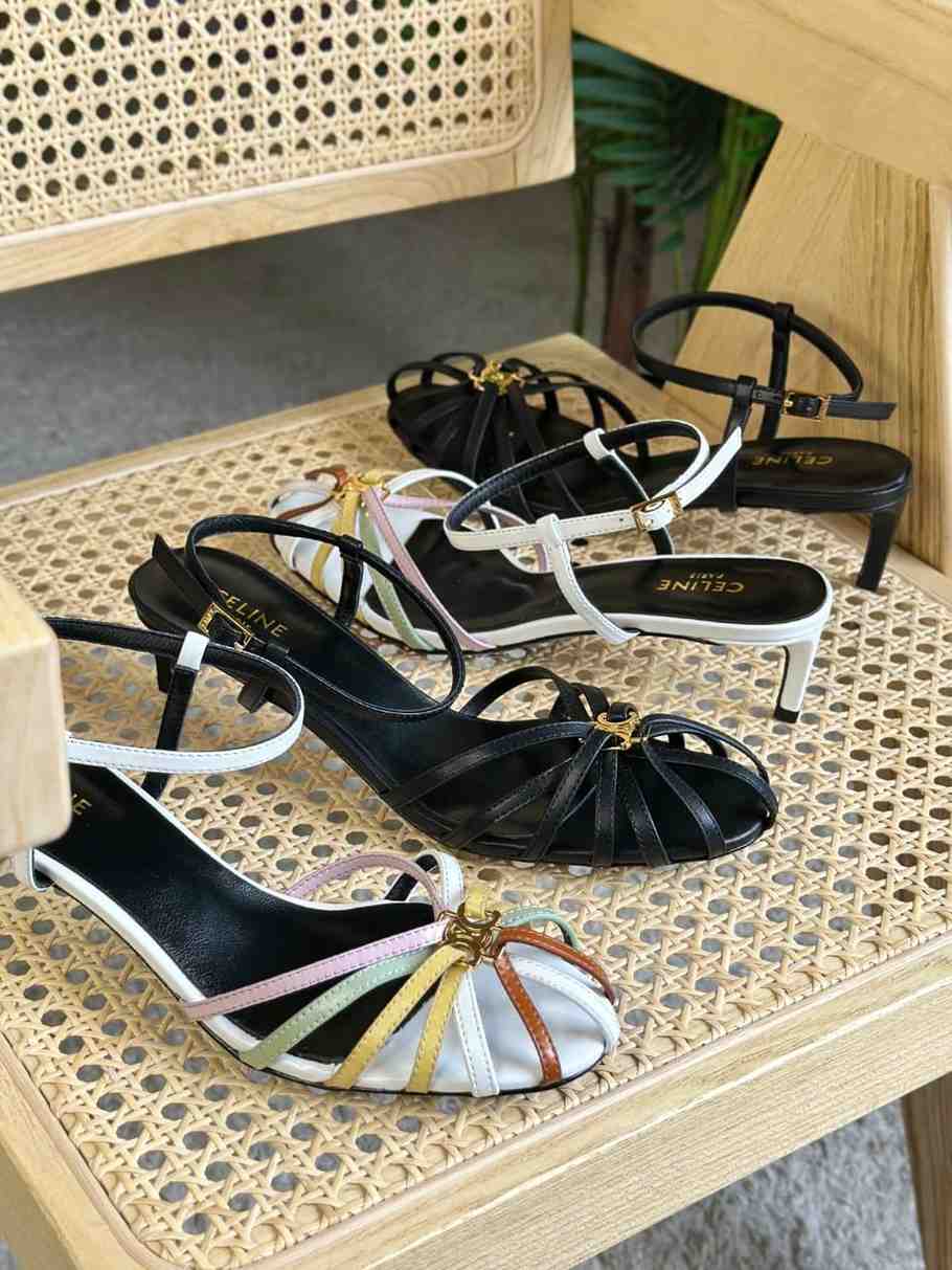 Celine Triomphe Heel Sandals in Laminated Leather