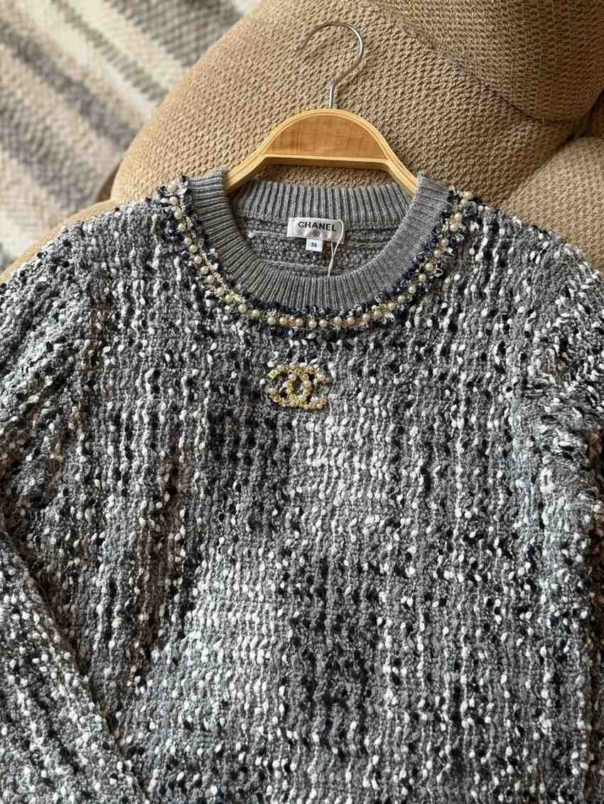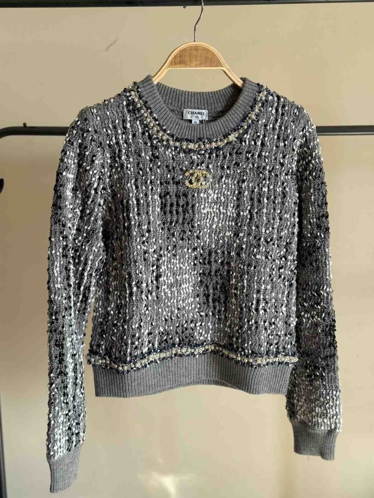 Chanel 23K Camellia Double C Silver Silk Tweed Swater