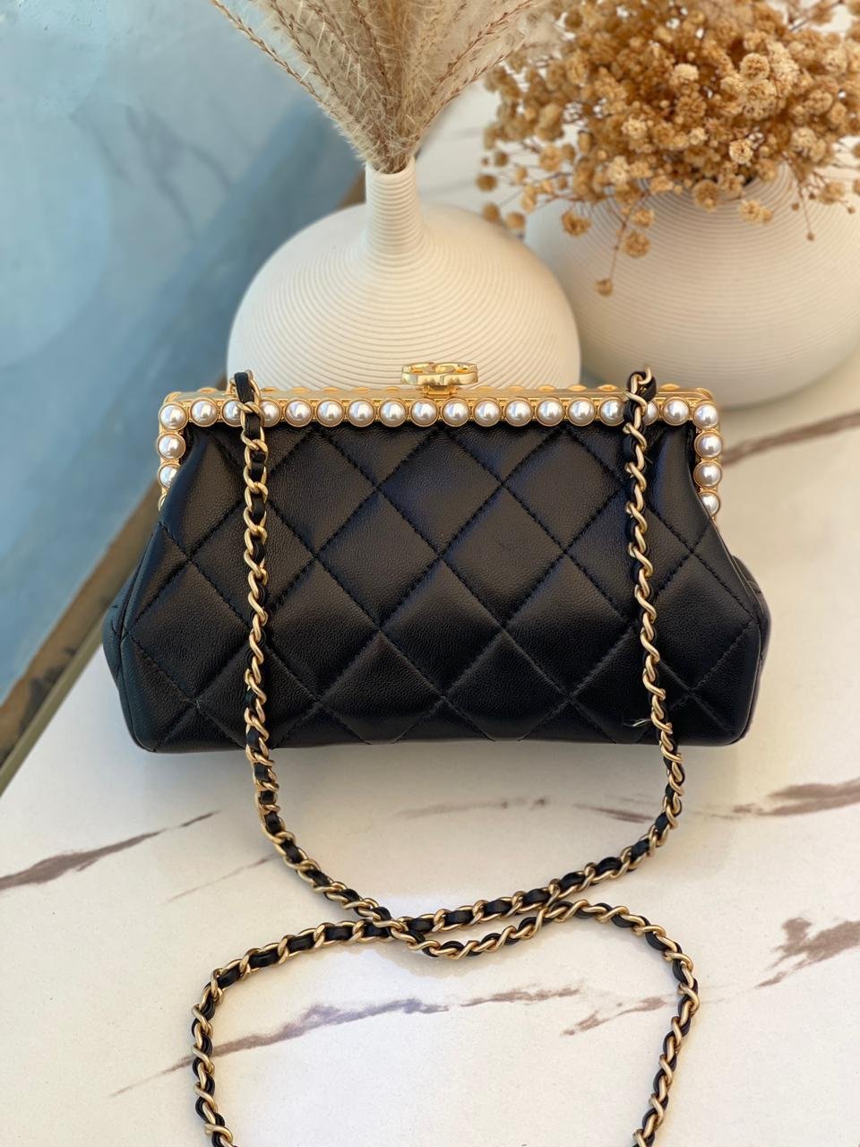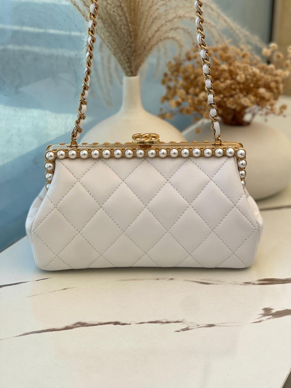 Chanel Pearls Lambskin Quilted Gold-Tone Metal Clutch In Dubai