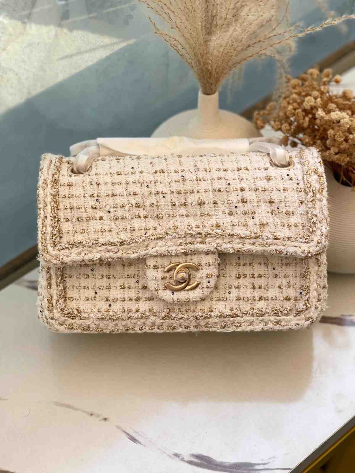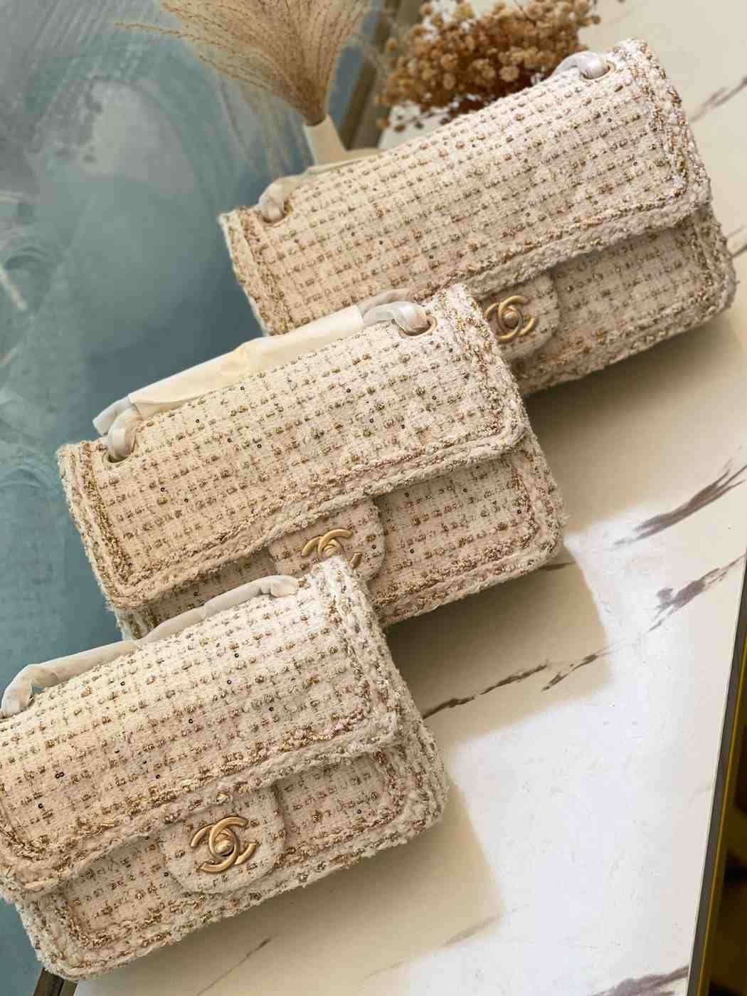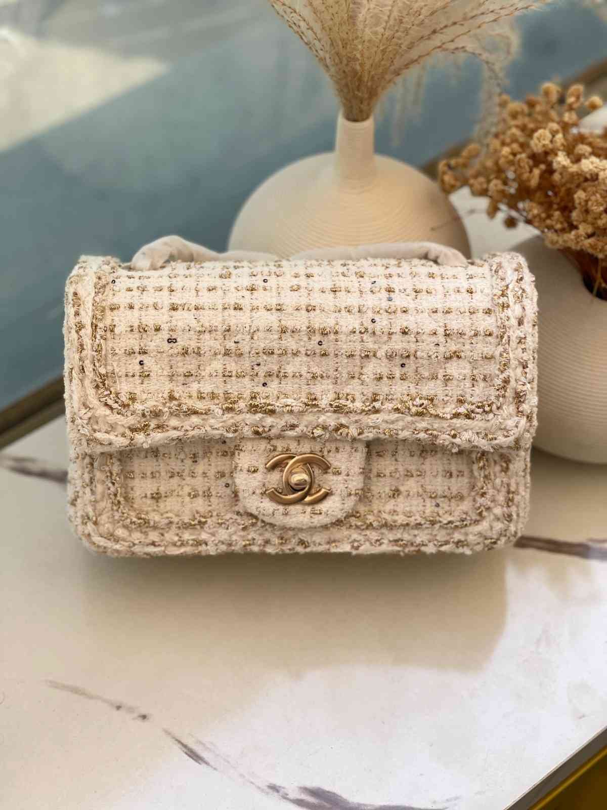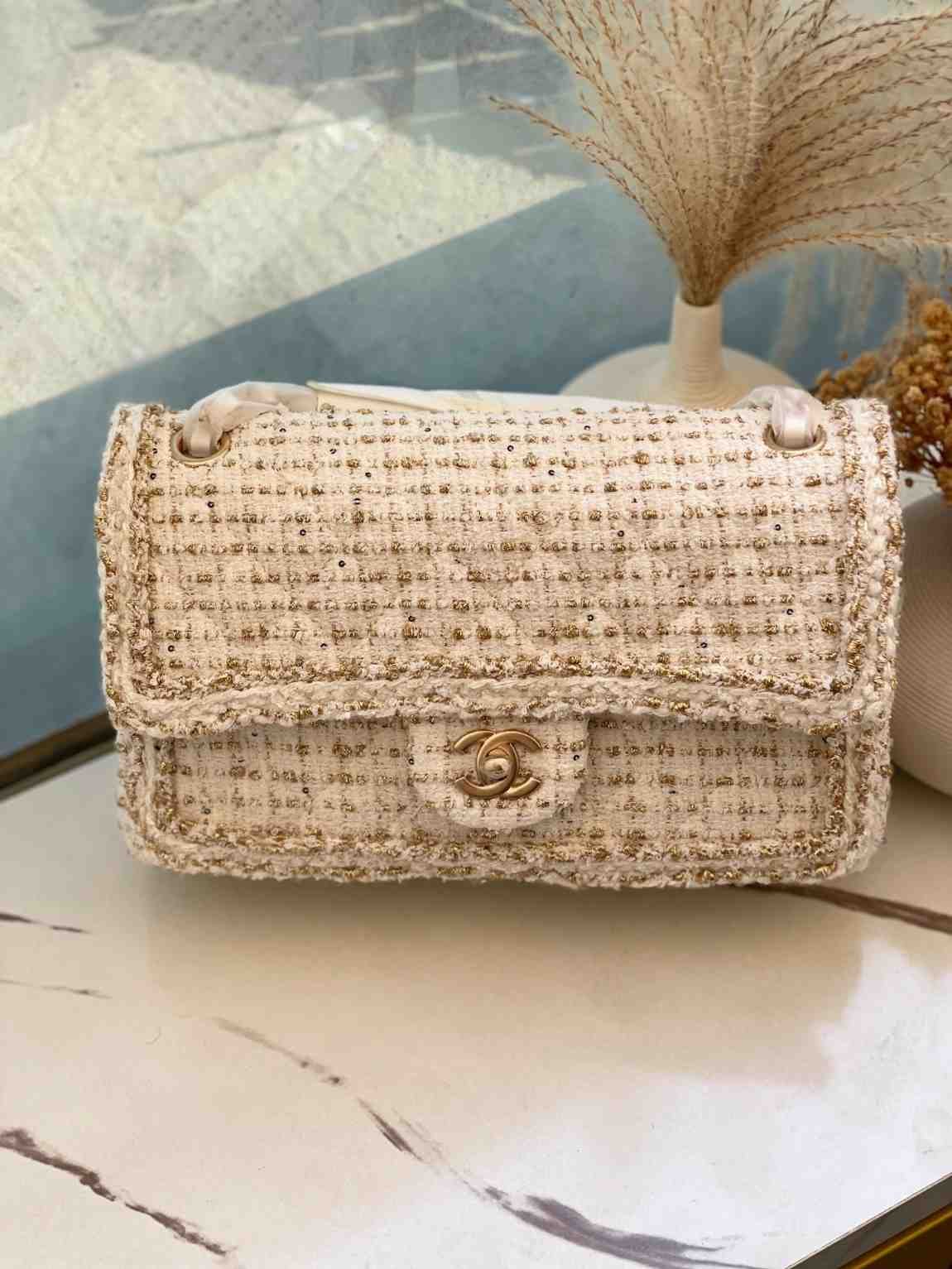 Be the first to review “Chanel Off White Tweed Crafted Signature Interlocking CC Flap Bag”