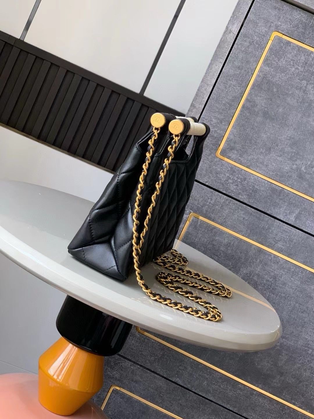 Chanel Shiny Lambskin Pearl Small Crossbody Shopping Bag Black