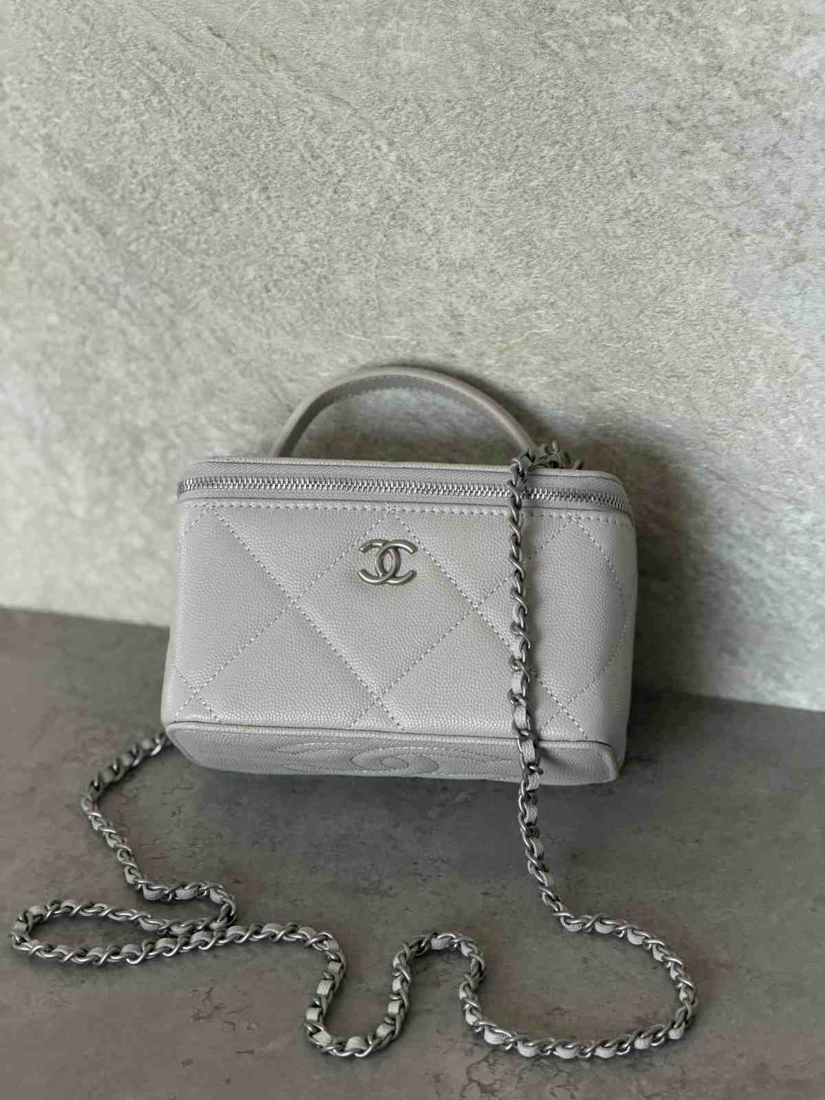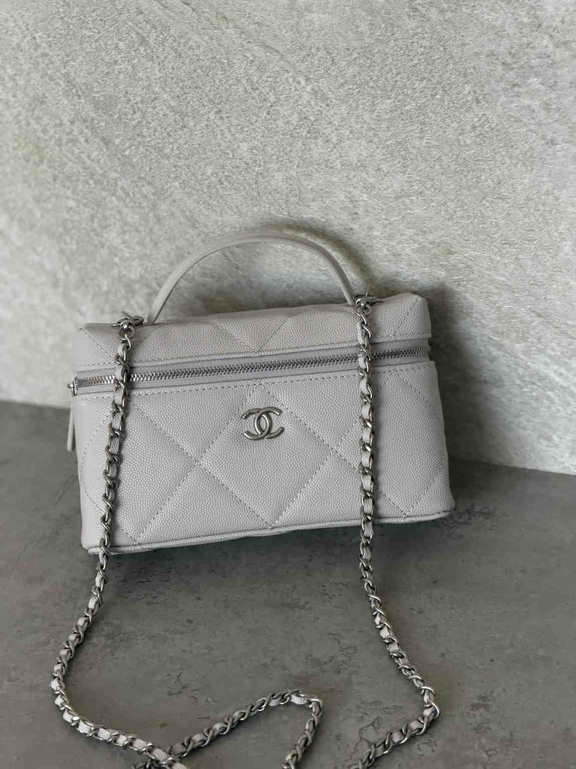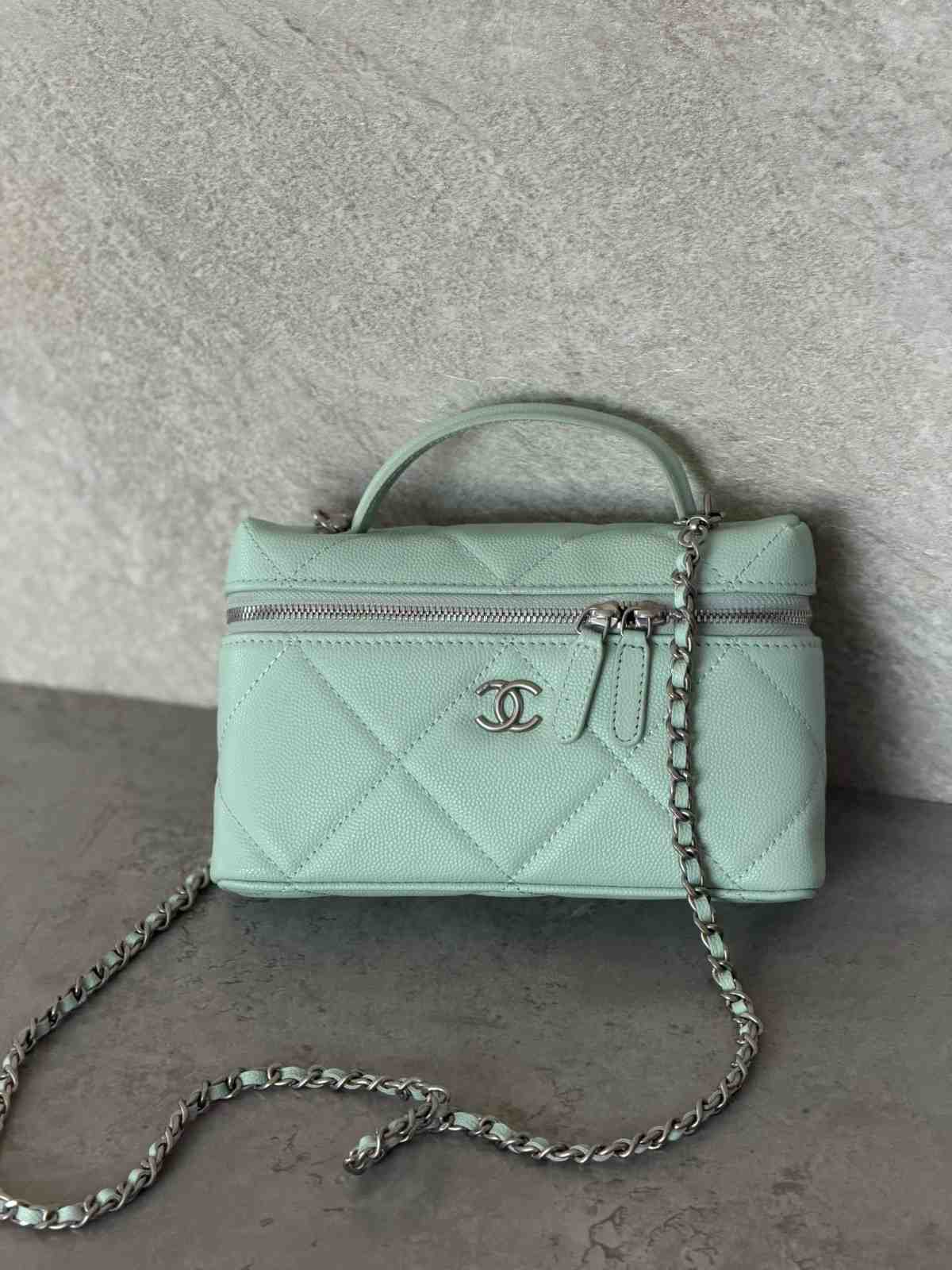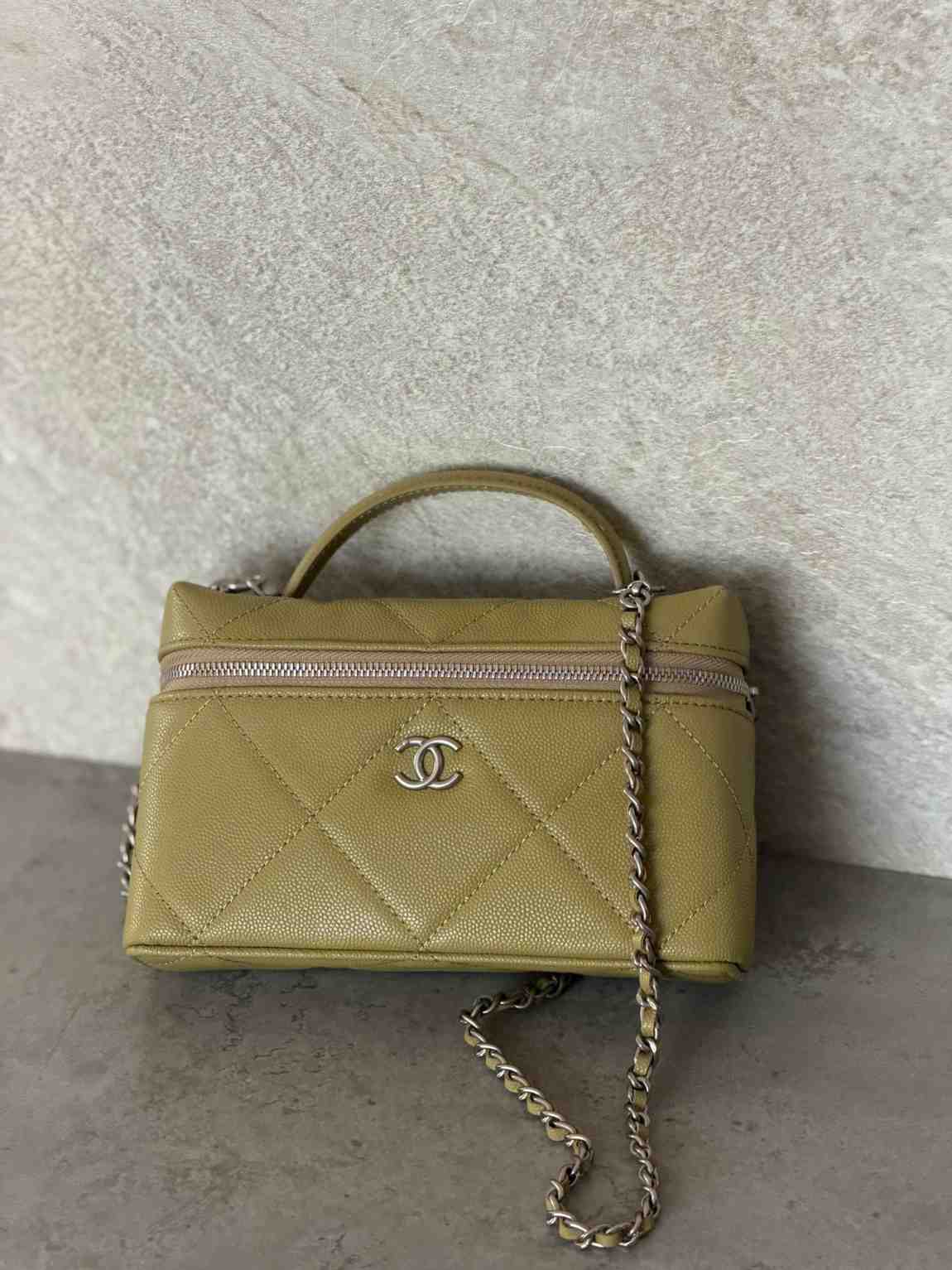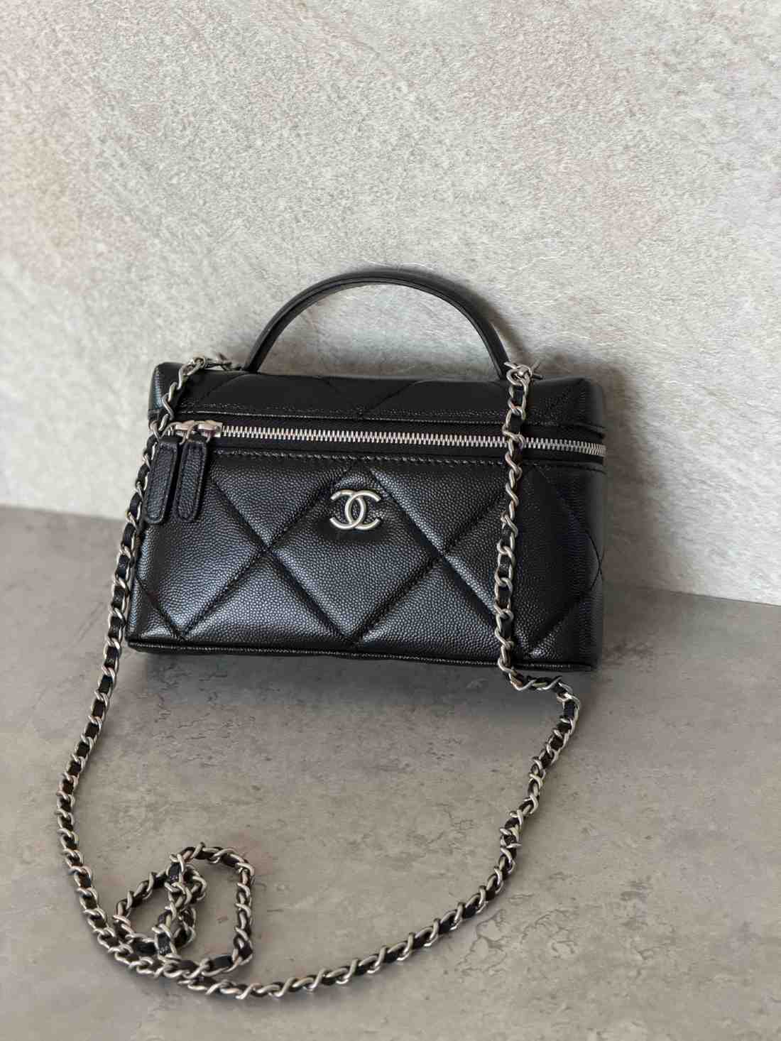 Chanel Top Handle Long Vanity with Chain Caviar Leather