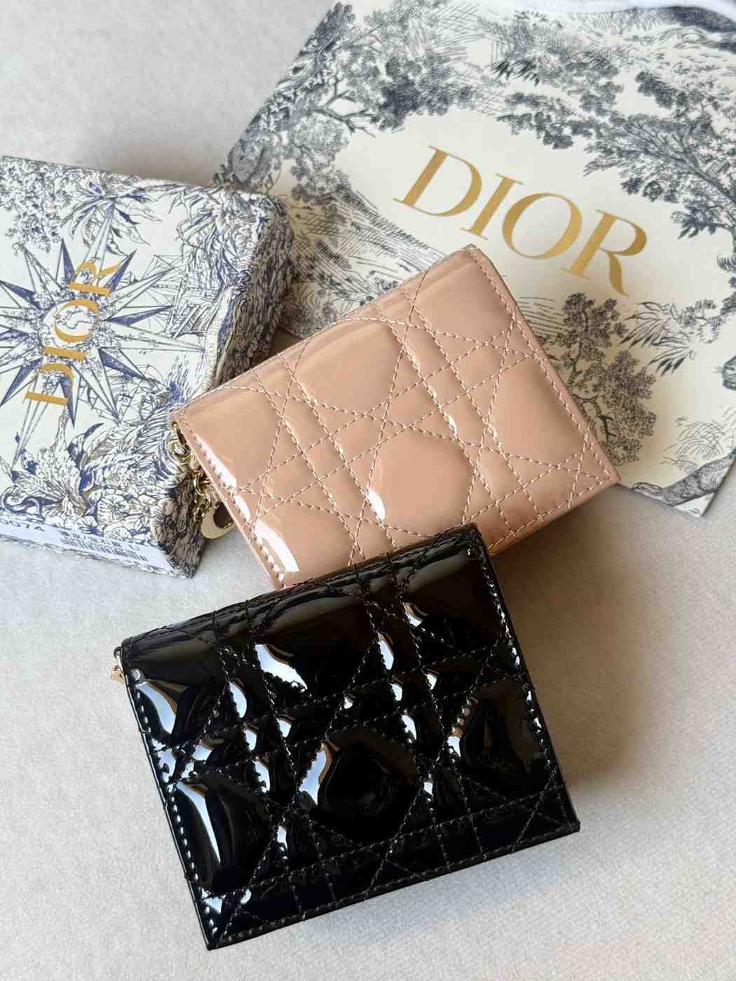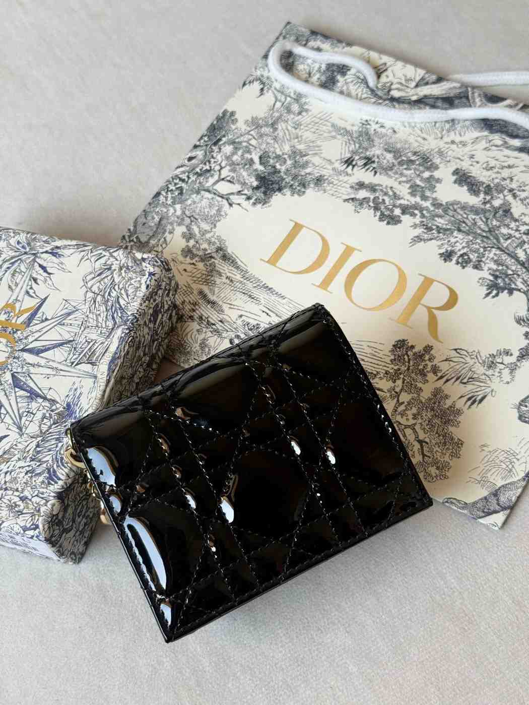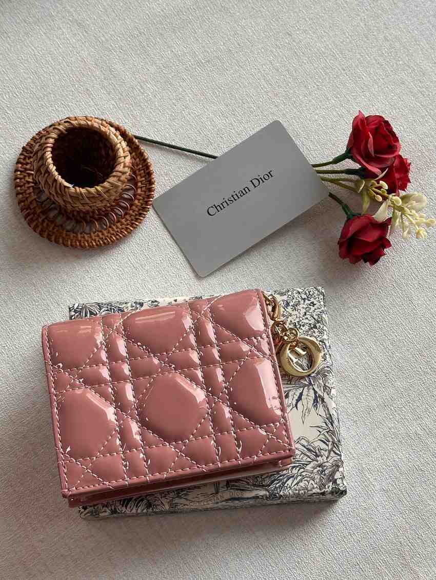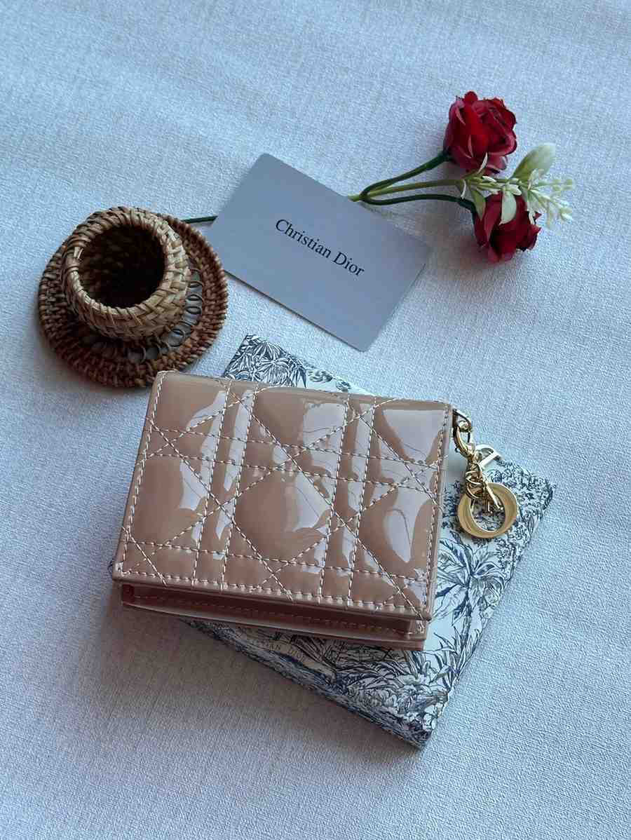 Christian Dior Lady Dior Mini Wallet in Patent Calfskin Leather