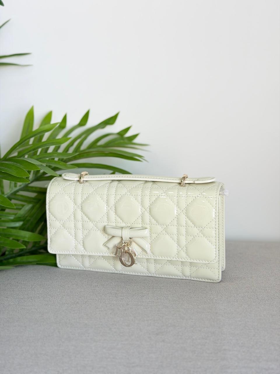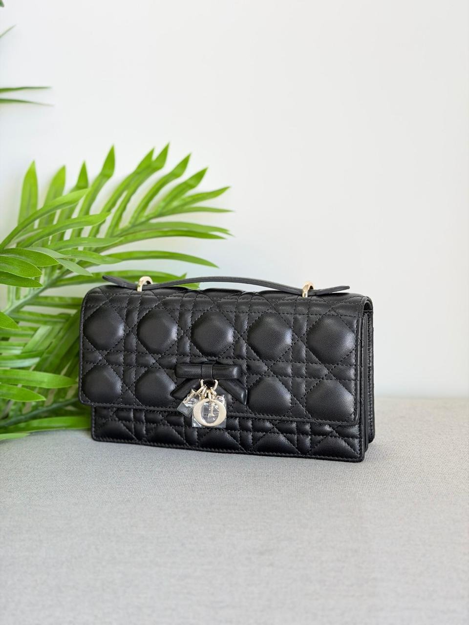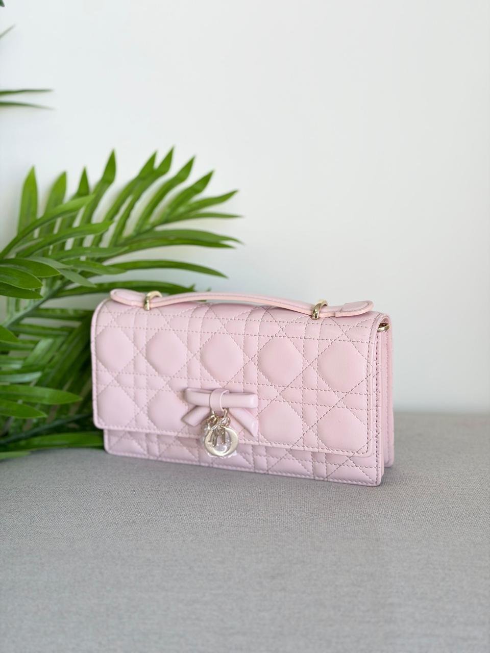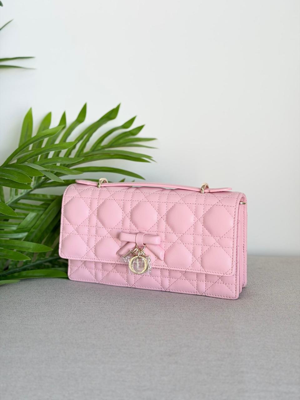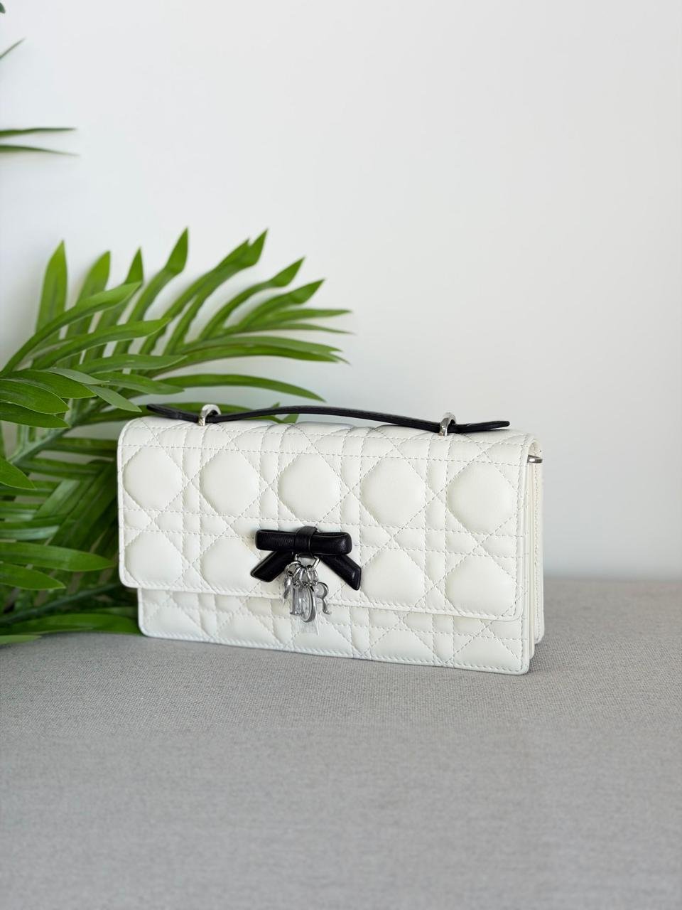 - Decorative bow with D.I.O.R. charms on the front