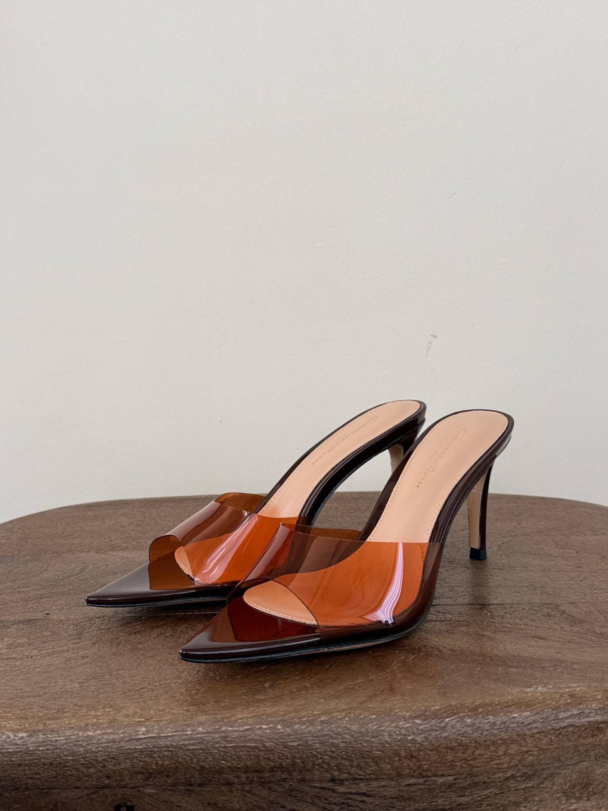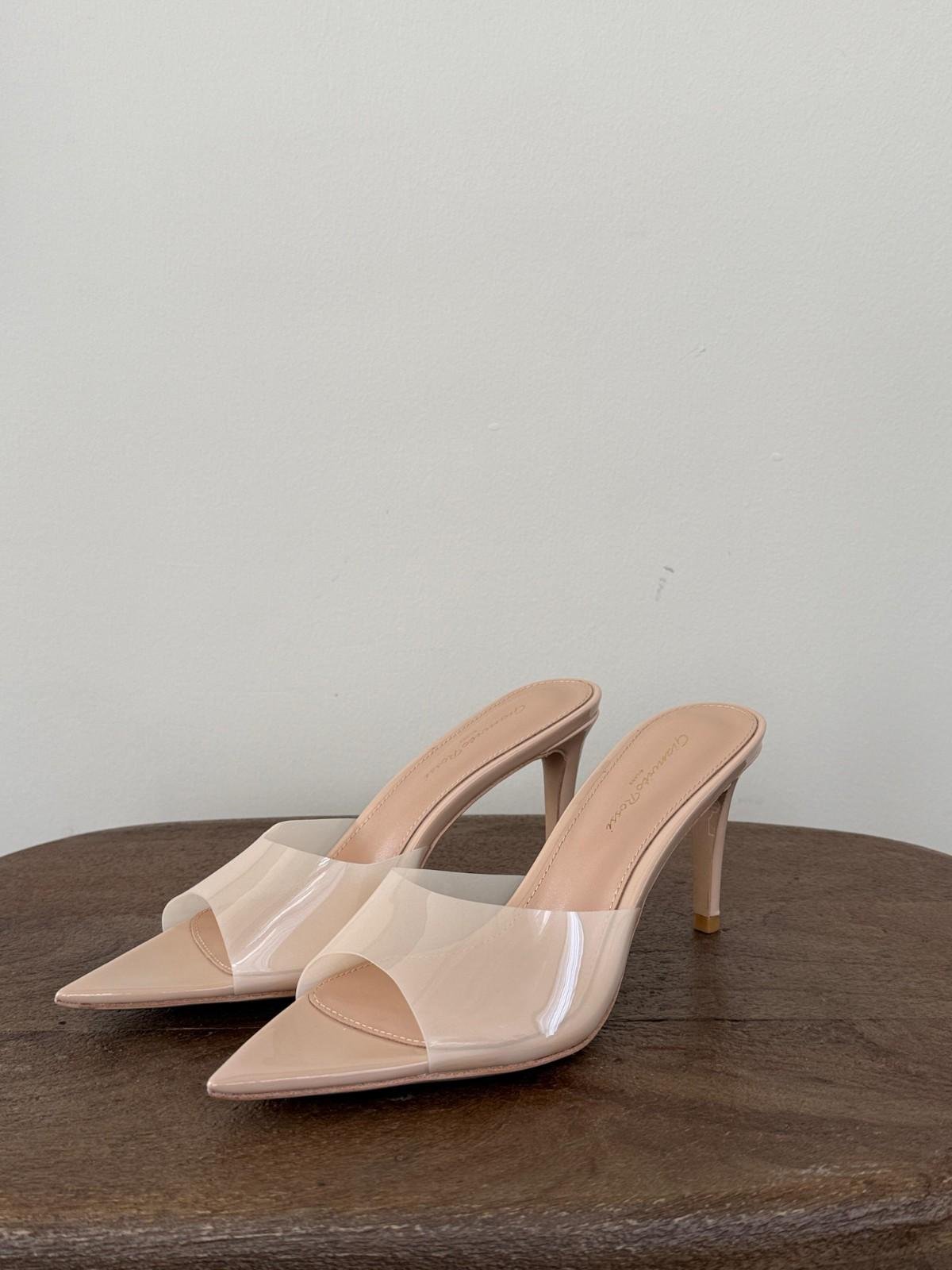 Gianvito Rossi Glossy Patent Leather Elle 85 Plexi Mules