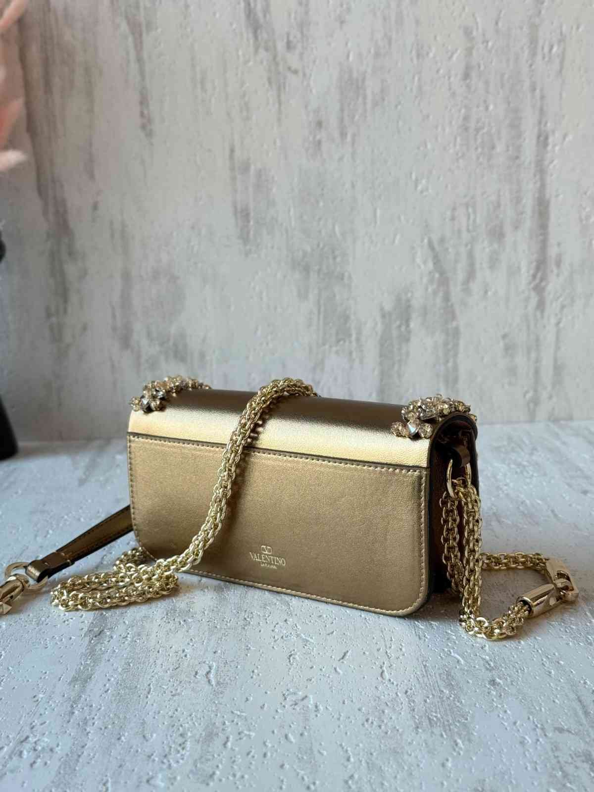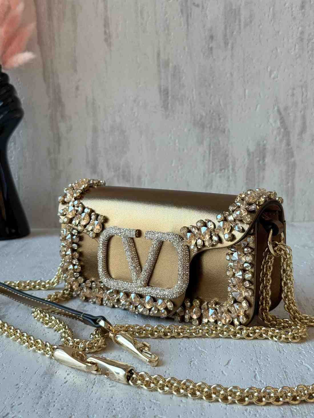 Vallentino Garavani Jeweled Locò Metallic Leather Shoulder Bag In Crystal