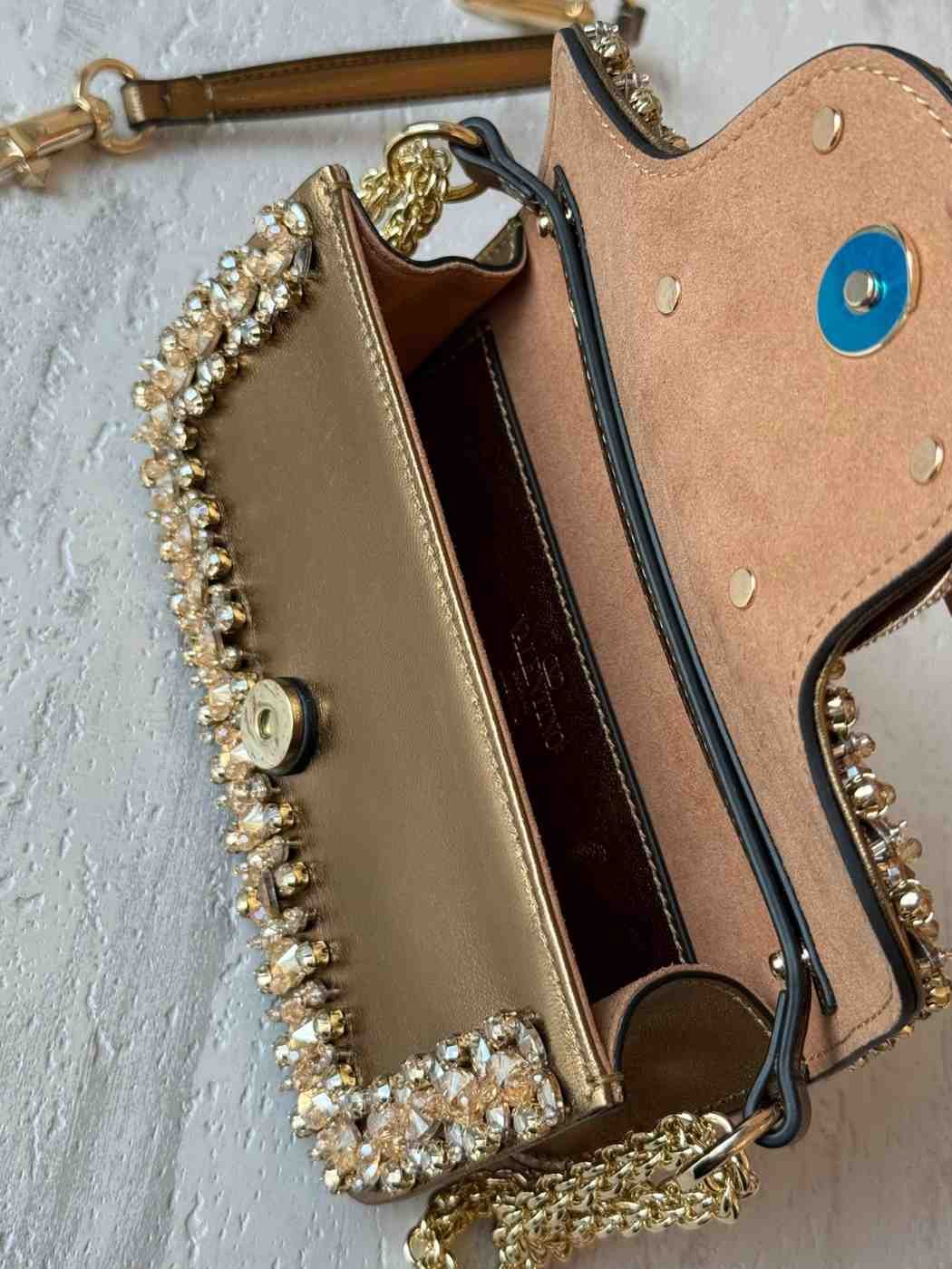 - Gold-finish metal hardware